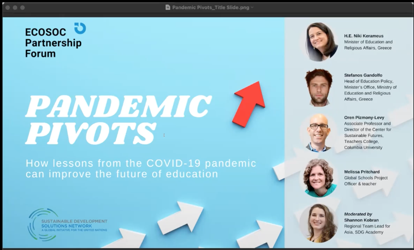 On January 31, 2023, the UN Sustainable Development Solutions Network hosted “Pandemic pivots: How lessons from the COVID-19 pandemic can improve the future of education" as an official side event of the UN 2023 ECOSOC Partnership Forum.